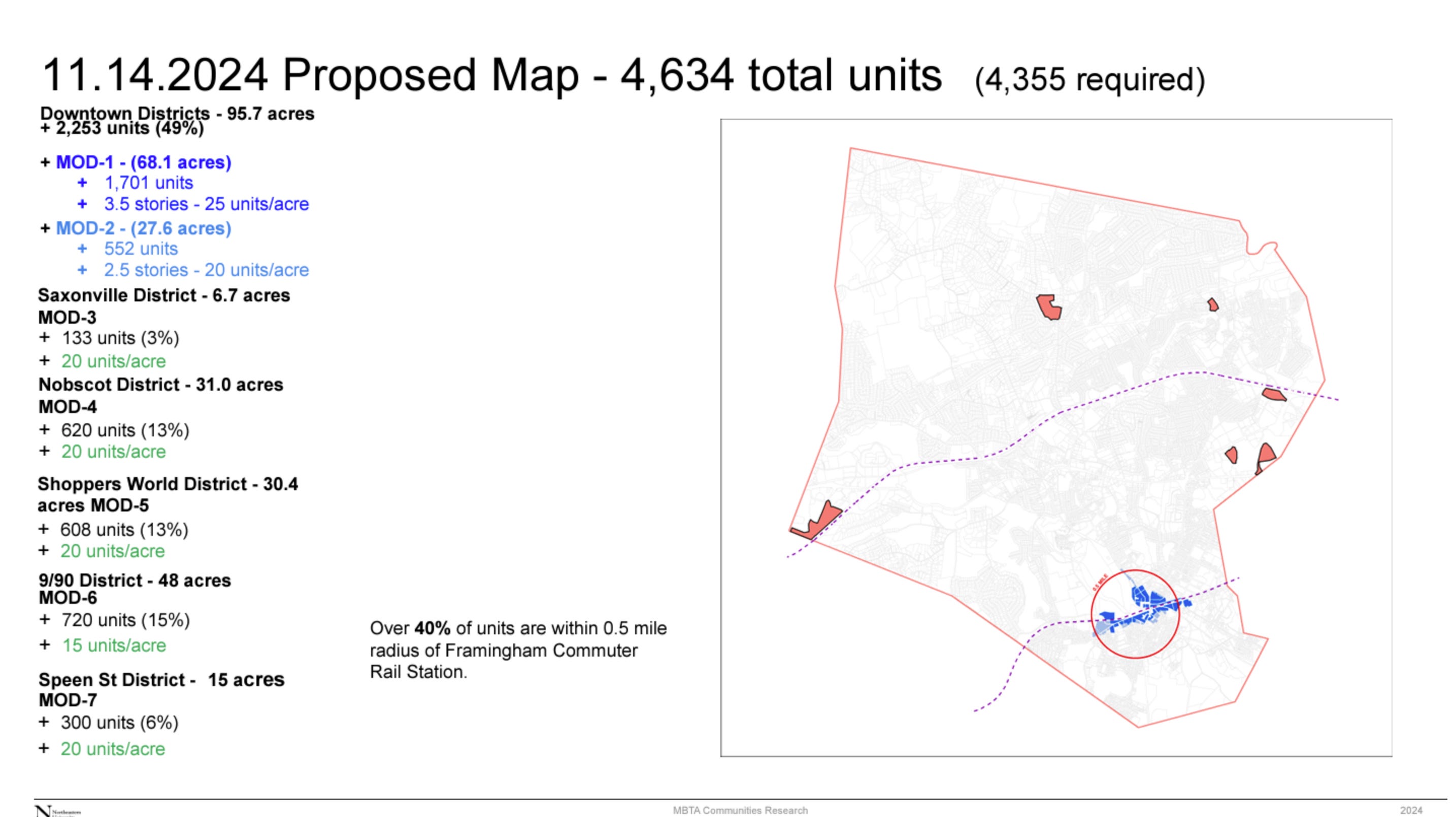 Nobscot Discussed in 2023: Nobscot was under consideration for zoning in the fall of 2023, though it wasn’t included in the official proposal until 10 months later. In the background materials of the canceled (due to technical issues) November 7 Council meeting is a letter from the Executive Office of Housing and Livable Communities in response to Sarkis Sarkisian, on behalf of Mayor Sisitsky, requesting an advisory opinion as to whether the 31 acre area in Nobscot is an eligible location under the Zoning Act.
